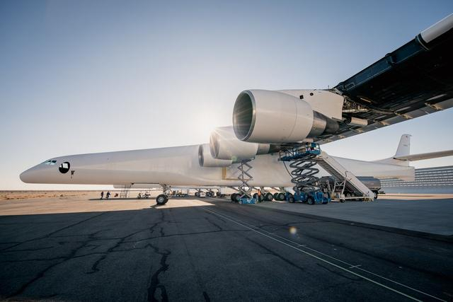 图为缩尺复合体公司的人员正在对“同温层发射”飞机的发动机油路进行检查。“同温层发射”飞机项目在2010年就已经开始了,2011年12月正式公布。当时,参与研发的雇员有40人左右,后来团队规模增加到300多人,而该机的编号为M351。