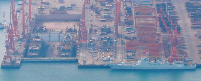 罕见一个船坞同时在建四艘驱逐舰!大连造舰盛况