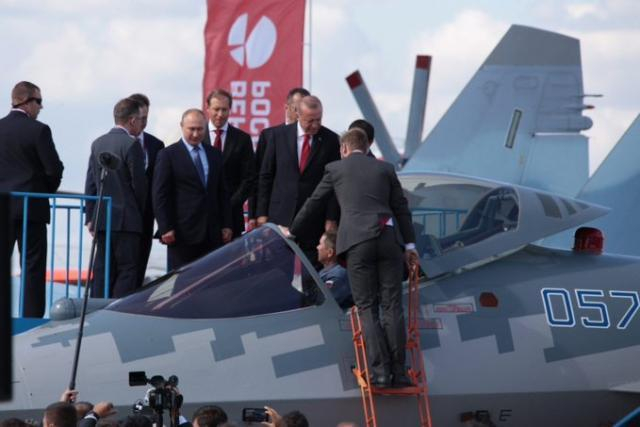 2019年8月29日,俄罗斯方面报道称土耳其总统埃尔多安参加了莫斯科航展上,并且向俄罗斯总统普京询问土耳其是否可采购苏-57战斗机。埃尔多安问道:“这是苏-57?它已经能飞了?”普京回答是:“能飞了。”埃尔多安问:“可以买吗?”普京微笑说:“可以买。”然后两人一起笑起来。而这是土耳其空军关于购买俄罗斯最先进战斗机苏-57最新的表态。