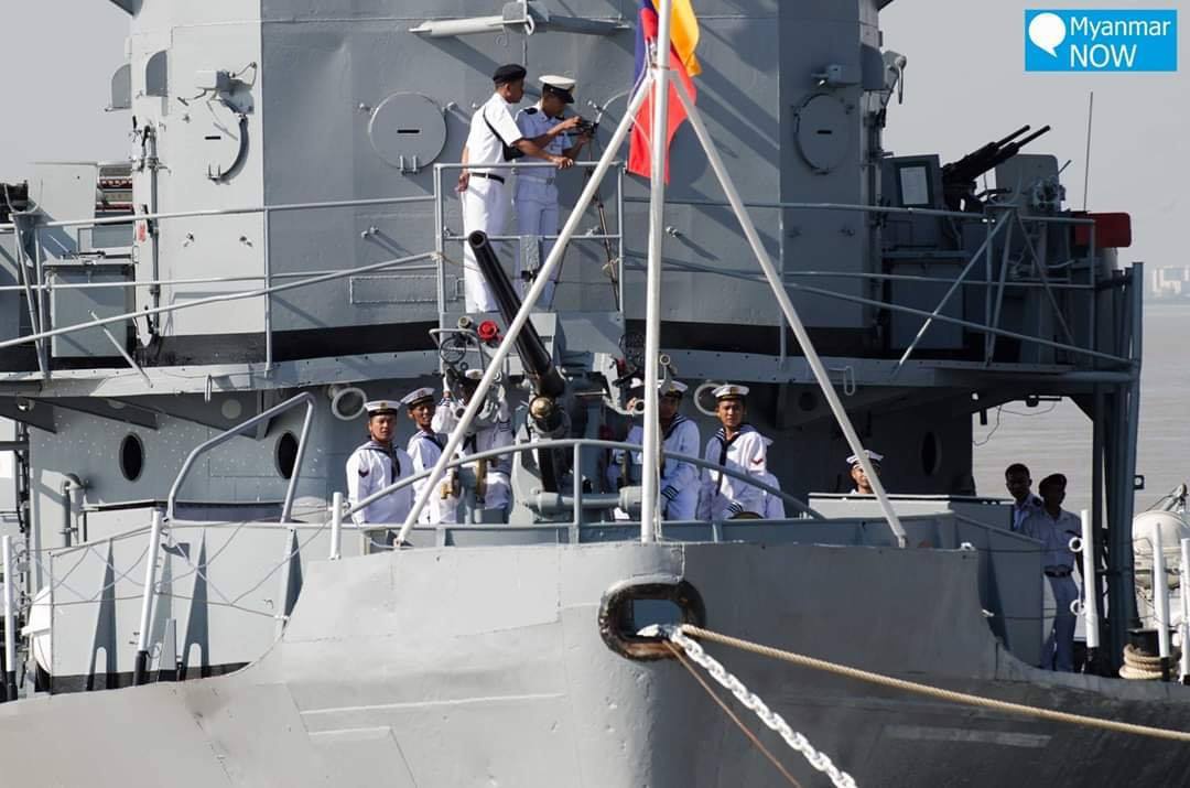 缅甸海军河上举行盛大阅舰式,万吨巨舰公开亮相,导弹火炮中国造