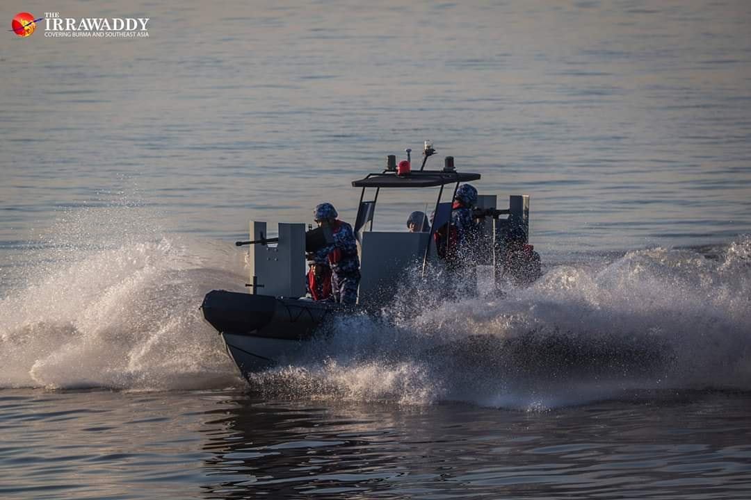 乘坐着硬式橡皮艇的缅甸海军特战队。