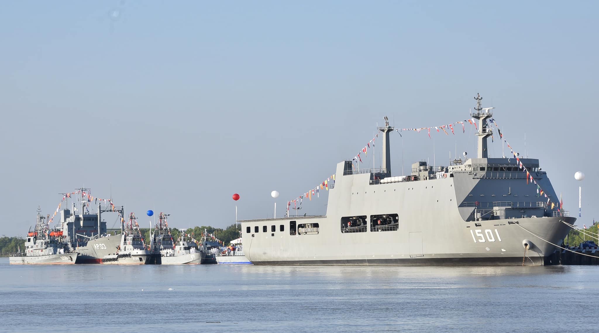 “莫塔马”号两栖船坞登陆舰是韩国大新造船厂为缅甸海军建造的。2019年7月下水,该舰满载排水量11394吨,,长约125米,宽约22米,舰上有飞行甲板,最多可容纳两架直升机,舰员配备126人,最多可搭载一支250名全副武装的部队和15辆装甲车。该舰曾经访问俄罗斯海军太平洋舰队,让只有一些老式登陆舰的太平洋舰队汗颜。真是亚洲怪物房,连缅甸都有万吨巨舰。