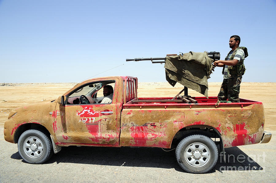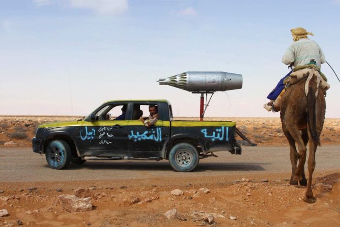 利比亚的皮卡已经成为了各方势力的武力展示,因此带有浓浓的后现代废土风,各种武装皮卡犹如奔跑的行为艺术,在这个战乱纷飞的国度中泼洒着弹雨。