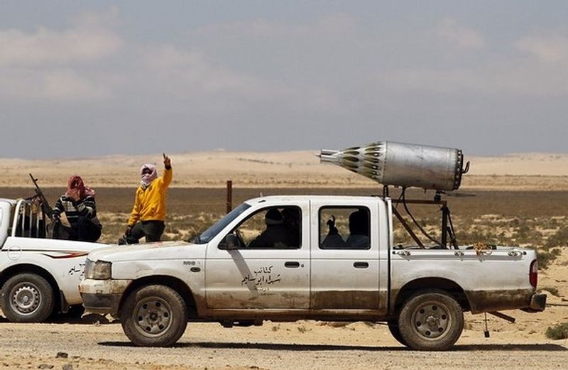 利比亚由于是由部族组成的国家,有着皮卡大国的美誉,部队作战也是以皮卡为主。各式各样的皮卡成为利比亚内战中的一道别样的风景线,这些皮卡普遍装备机枪、火箭弹等,在战斗中能够发挥出高机动和重火力的作用。这是利比亚武装人员使用的中国“中兴”皮卡。“中兴”皮卡也是利比亚比较喜欢使用的一种车辆,这辆车后装有一挺14.5毫米苏制重机枪,威力巨大。