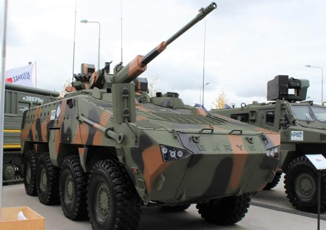 ▲安装有俄罗斯AU-220M遥控无人炮塔的"雪豹"轮式装甲车(图片来源于:网络)