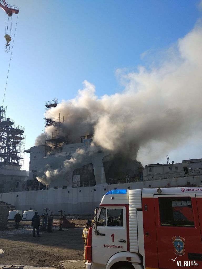 浓烟掩盖住了庞大的舰体,可见内部火势异常大。这让人想起了前不久在“库兹涅佐夫海军上将”号航空母舰上烧的那把大火,看来俄罗斯船厂的安全生产意识非常淡薄,出事成为了家常便饭。