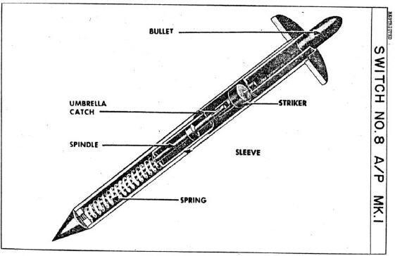 基于这种思路,小型化就成为地雷发展的必然结果了,而有这么一种地雷,算是小型地雷中的奇葩了。二战时期的英国,在欧洲战场上节节败退,但却是他们率先发现了地雷小型化的必要,英国在二战时期,其军工研发能力十分强大,其“国防部一部”研发了大量陷阱装置,这其中就包含一种“子弹雷”,这种地雷代号“No. 8, Anti Personnel, Mk. I”从其命名上可以看出是陷阱装置中的第8种,反步兵装置。