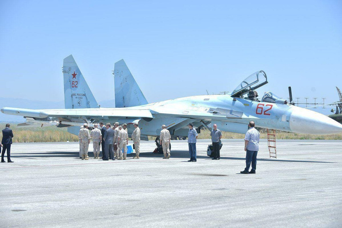 有意思的是,叙总统此次参观泄露了一个重要信息——俄军可能已经向叙利亚增兵。据图片显示,俄空天军的苏-27SM3已经抵达叙利亚。