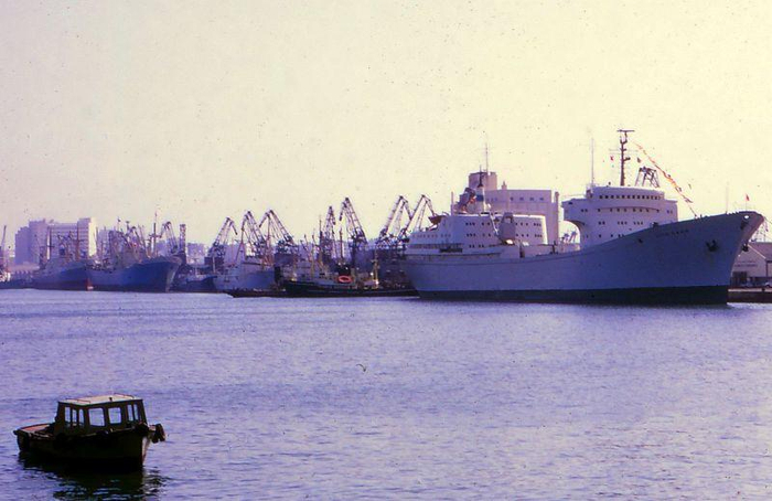 停靠在码头旁边的“奥托•哈恩”号核动力轮船。该船总共有63名船员,另外最多还可以搭载35名科研人员。