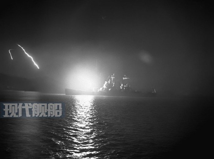 朝鲜战争期间的1950年,美军CA 73圣保罗号重型巡洋舰向朝鲜兴南海岸倾泻203毫米炮弹。
