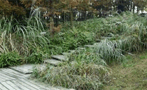 泥巴树枝穿草丛。