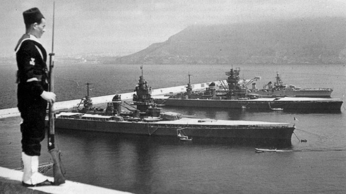 二战进入到1940年,绝对是让法国人最尴尬和纠结的一年,仅仅三个月的时间,法军强大的陆空部队便惨败给了德军‘闪电战’。好在当时其还保有一支排名世界第四的强大海军,战舰总数高达238艘,包括一艘航空母舰和十余大型战列舰。