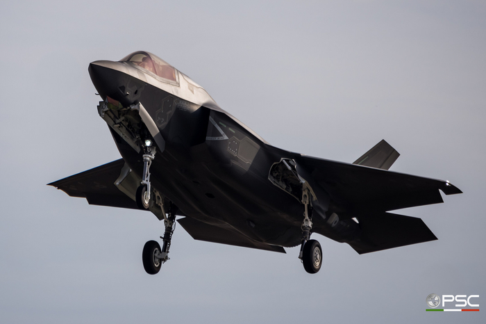 当地时间1月18日,喷涂有意大利海军标志的F-35B战斗机在意大利西北部的卡梅里总装和调试厂(FACO)机场进行了STOVL(短距起飞垂直降落)模式试飞,这是该机喷涂意大利海军标志后首次对外公开亮相。