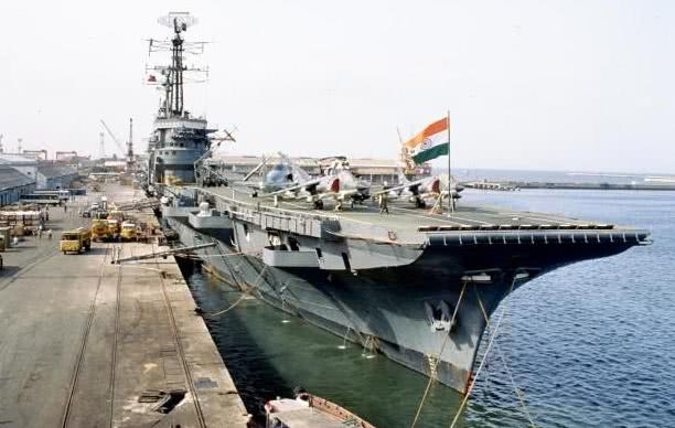 图为退役前的初代"维克兰特",可见其甲板空间非常局促。