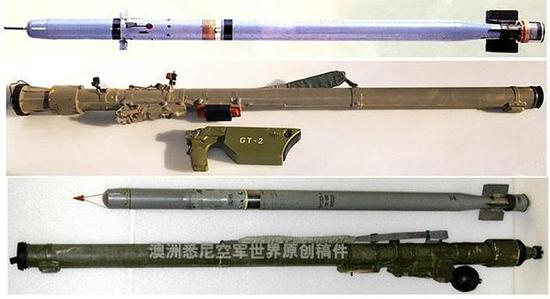 从左到右:中国FN-6、俄罗斯SA-16、SA-14。