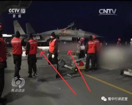 这次航母编队实兵实弹演习也让另一个部门从幕后走到了台前,这支穿着醒目的红色马甲的队伍是航母上的弹药保障部门。这个战位是在飞行甲板以下是常人看不见的地方,非常深的弹药仓别人看不见,因为前几年,这个飞机又很少执行这样的实弹的射击任务。