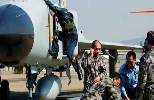 歼-8II战斗机飞行员下飞机,没有登机梯