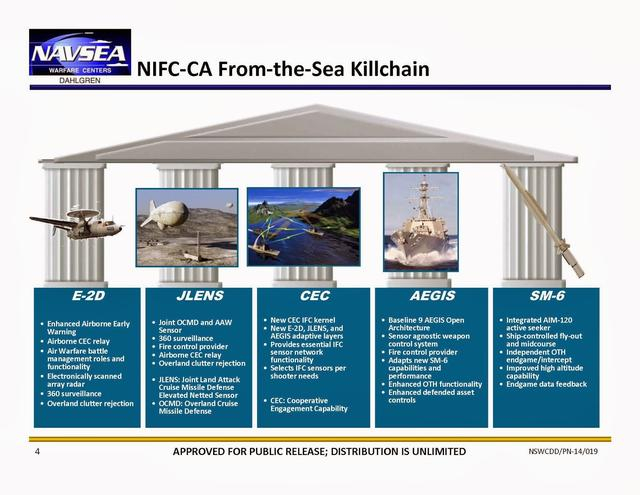美国海军研究所的一份报告引用了海军项目执行办公室综合战争系统的管理员的评论,详细介绍了一些海军项目,包括进一步改进“海军一体化防空火控系统(NIFC- CA)。”海军已经在DDG 51“阿利·伯克”级导弹驱逐舰上部署并测试了NIFC-CA,检验其在超视距以外的距离侦测和摧毁敌方反舰巡航导弹的能力。