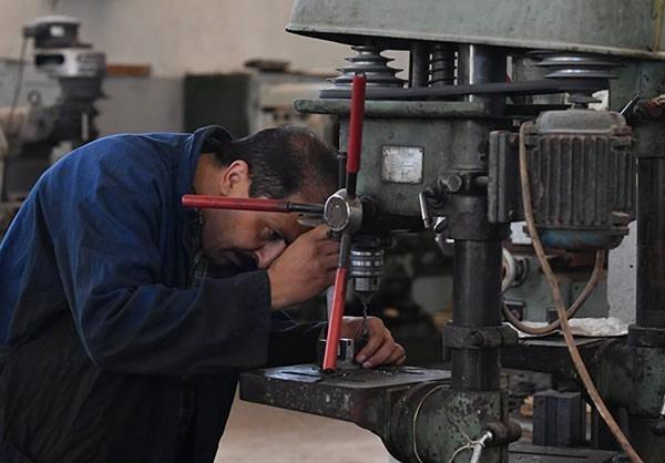 叙利亚弹药制造厂工人对零部件进行钻孔,这场景如同中国的私人作坊。