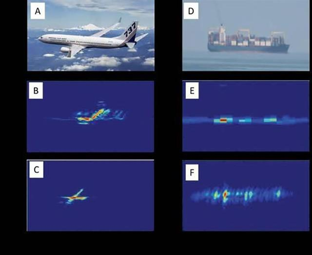 图片为微波光子雷达照射下,显示的飞机和民船的雷达影像。