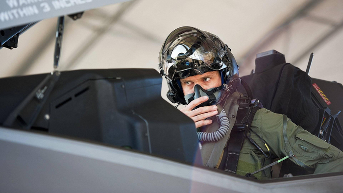 资料图:正在戴上呼吸面罩的F-35战机飞行员