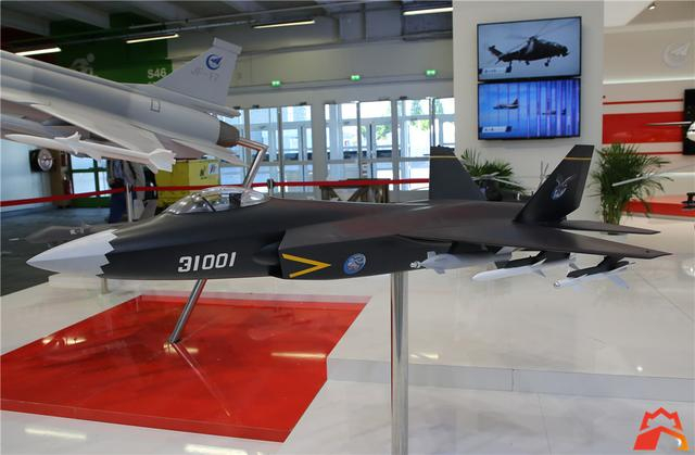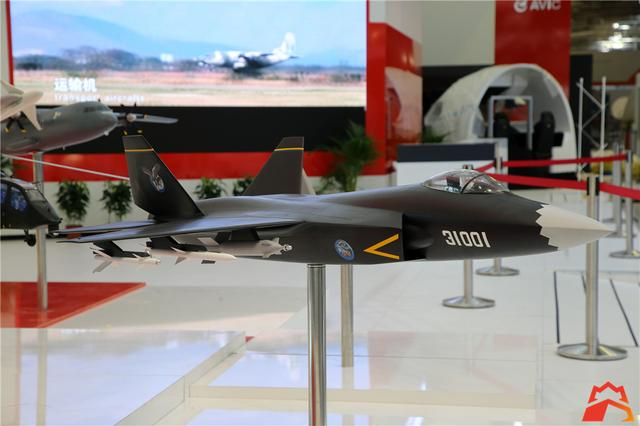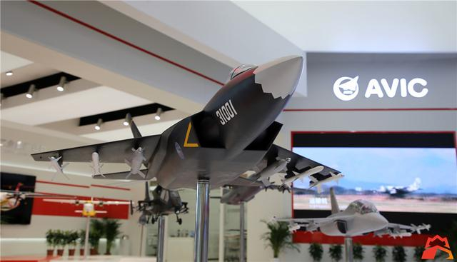 中国航空工业集团公司(AVIC)展台展出的FC-31“鹘鹰”。