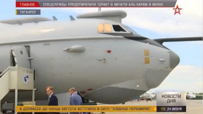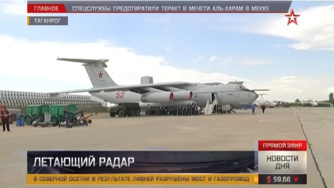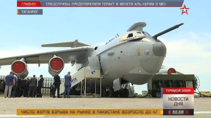 6月24日,在俄罗斯国防部下属的红星电视台播放的新闻中出现了俄罗斯正在研制的新一代远程战略预警机A-100“总理”的A-100LL技术验证机(红52)的画面,这也是这款战略预警机的技术验证机画面首次对外曝光。图为曝光的A-100LL技术验证机。