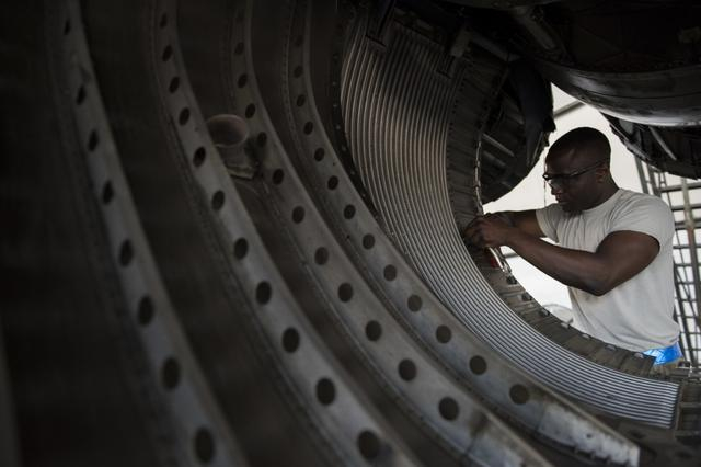 第332远征维修中队的负责人Joshua Burnett表示,当F-15E飞行时间达到400、800及1200飞行小时时,就会进行一系列检查。其中一项关键的部分就是无损检测,他们会将战机几乎全部分解,以排查机身上可能存在的微小裂缝及损伤。