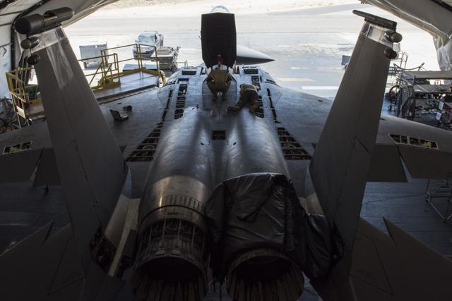 F-15系列战机是美空军现役的主力战机之一,从1974年开始在美空军服役,先后衍生出多种型号。此次进行维护的F-15E属于双座战斗轰炸机,绰号是“打击鹰”,虽然该型战机在1988年才交付美军使用,但战机的寿命也已进入暮年。不过,按照美军计划,除早期的F-15A/B型战机全面退役外,后续机型经过改装将至少服役到2025年,届时,美军中或再增加一位“50岁”高龄的服役者。