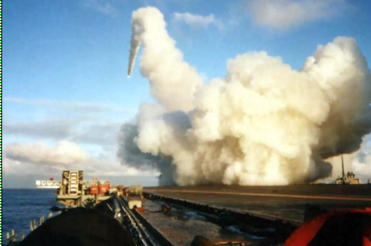苏军除了航母之外最大的水面战舰——基洛夫级巡洋舰,也配备了多个P700反舰导弹发射器。这一导弹发射时场面壮观,比美国鱼叉、战斧等导弹发射的震撼程度完全不在一个级别上。