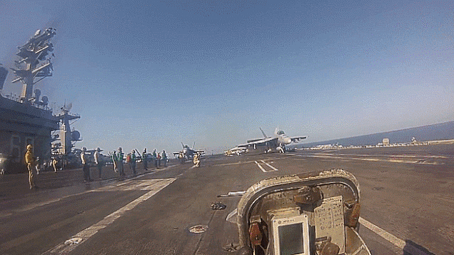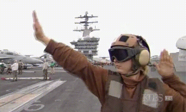 航空母舰上航空联队的指挥手语与陆上飞机的手语相近