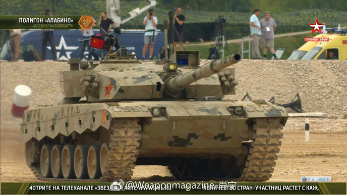 这5个小组内的参赛国家代表队将与目前组内的其他国家参赛代表队展开共3轮较量,在每一个小组内选拔出优秀的代表队进入下一阶段的较量中,最终将选出4支最优秀的代表队参加接力赛并决出冠军。图为在赛场上狂奔的96B坦克。
