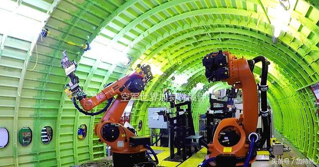 一台世界顶尖的机器人,在装配运20的机身部件,精准无误,不知疲倦!