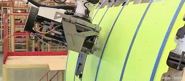 从视频截图来看,这是一代高度自动化的世界最新水平自动钻铆机器人!