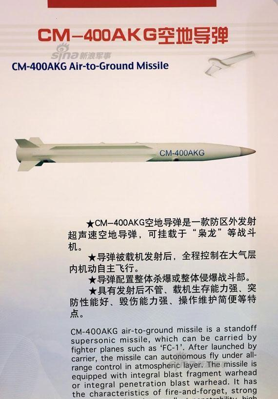 他们集团这款SY400大家都非常熟悉的导弹,一说就知道,就是为枭龙战斗机配置的CM-400AKG空对地导弹。CM-400AKG空对地导弹和SY400火箭炮在攻击样式,制导样式,弹道特征上如出一辙,根本就是一个爹妈的两个孪生兄弟。