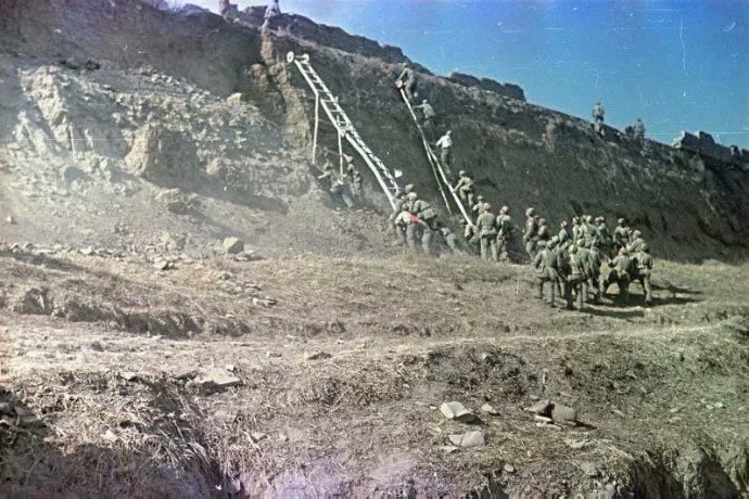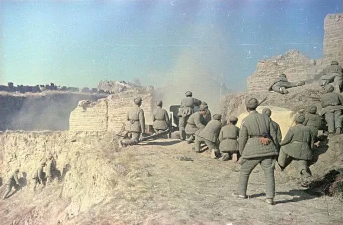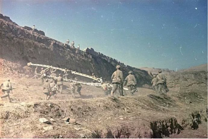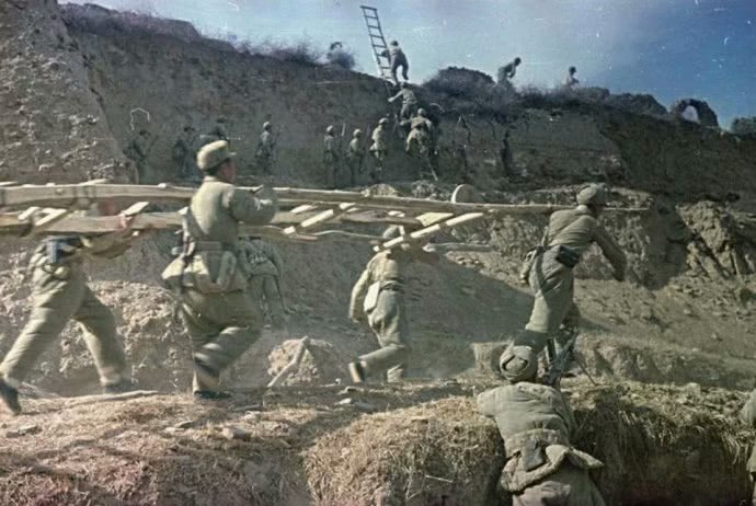 战士们奋不顾身顺着云梯攀上城墙。都说解放军“土”,但看完这些解放军的照片,解放军能打赢国民党军不是没有道理的,根本不需要什么“高达”。