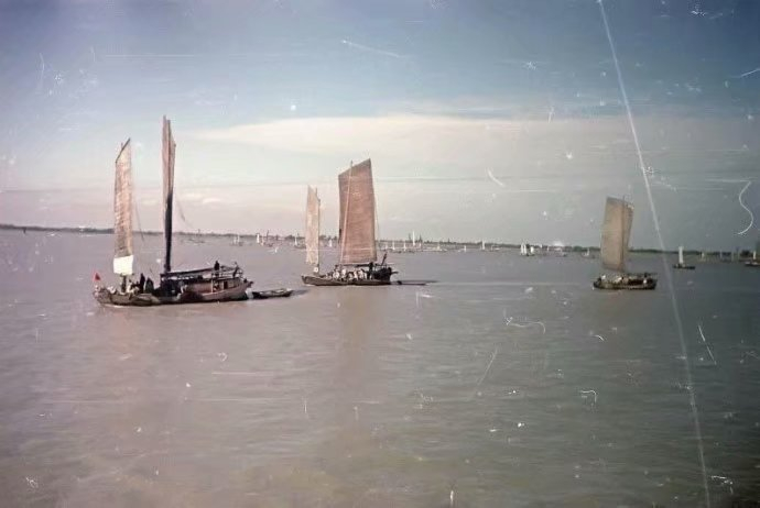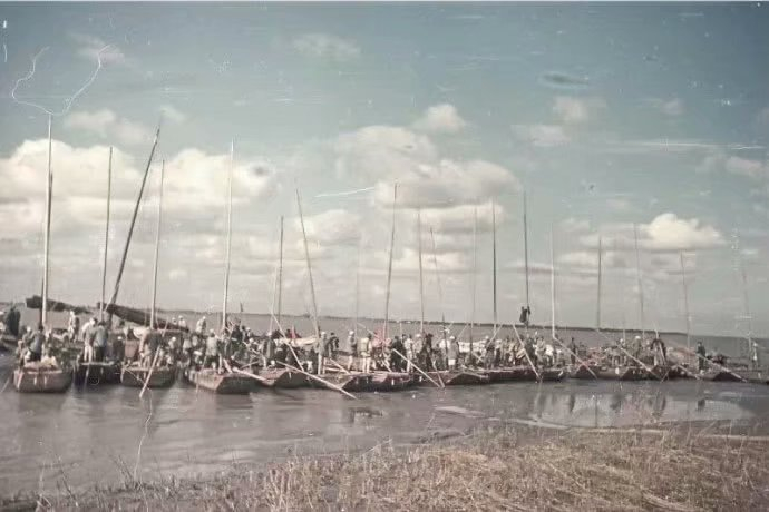 渡江作战中,解放军就是搭乘这样的木头帆船,冒着枪林弹雨渡过长江。
