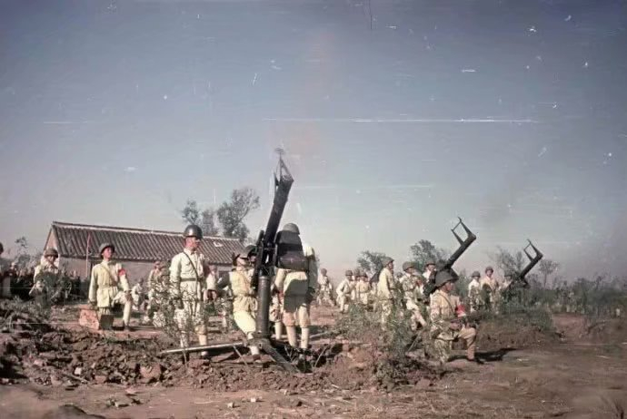 这是解放军的迫击炮阵地,在战争中,解放军炮兵以高超的技术,经常以弱胜强。