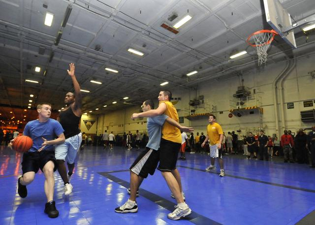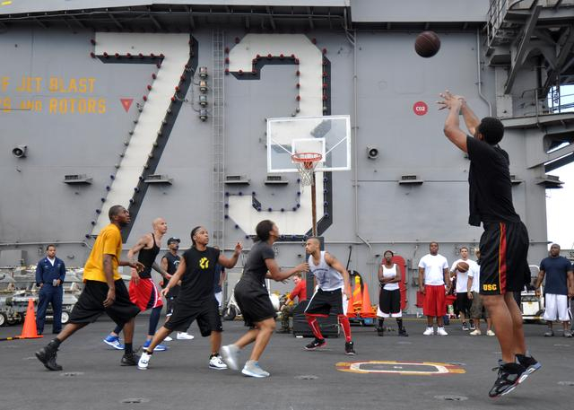 卡尔·文森号航母不但是军事武器 还曾作球场承办篮球联赛