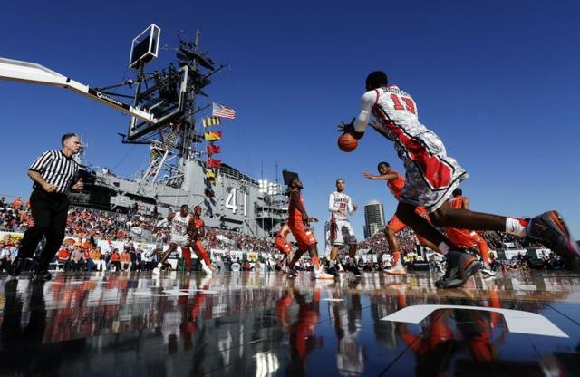“卡尔·文森”号航母上的大学生篮球联赛。